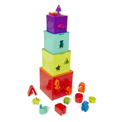 Battat Sorting and Stacking Boxes Nesting Toys with Colour Coded Dexterity Keys Numbers, Letters & Shapes Cubes for Block Learning Activities, BT2751Z