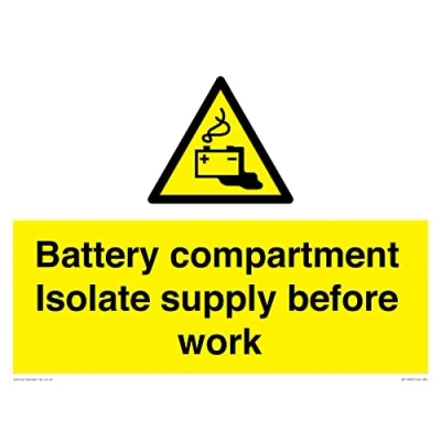 Battery compartment Isolate supply before work Sign 400x300mm A3L