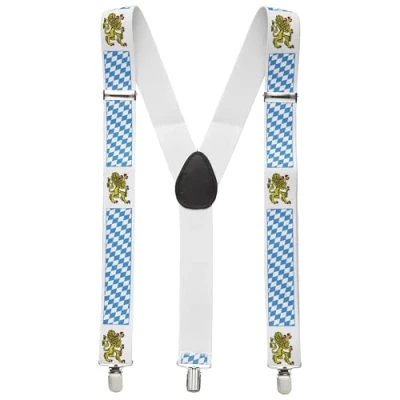 Are you looking for an accessory for your costume outfit at carnival or for the next beer festival? Then this item from Widmann is just the thing for you Included are beautiful braces in blue and white, decorated with golden lions They are adjustable and can therefore be individually adjusted This accessory is not only damn useful as it prevents the trousers from slipping, but also brightens up your outfit More beautiful costumes and accessories can be found in our brand shop. Click on the brand name Widmann below the product title, Manufacturer: Widmann