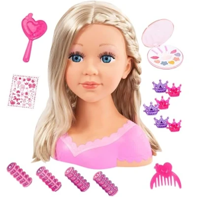 Charlene Super Model doll make-up head (approx. 27 cm) with lots of accessories Styling head for children with extra long eyelashes and large eyes Hairdressing head with long blonde hair for styling and decorating Doll head with lots of accessories (hair clips, curlers, etc.) Hairdressing doll with colourful make-up for further fun, Manufacturer: Bayer Design