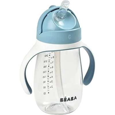 From 8 months: the Béaba straw cup 300 ml allows young children, from 8 months, to learn to drink on their own freely Waterproof: 100% leak-proof cup, it does not leak, even if the cap is open Easy to use, perfect for use at home and outdoors Removable: removable handles: make it easy to grip for the first use, they can be removed afterwards if necessary TRITAN: Strong and transparent material (does not colour) Hygienic: easy to clean and completely removable