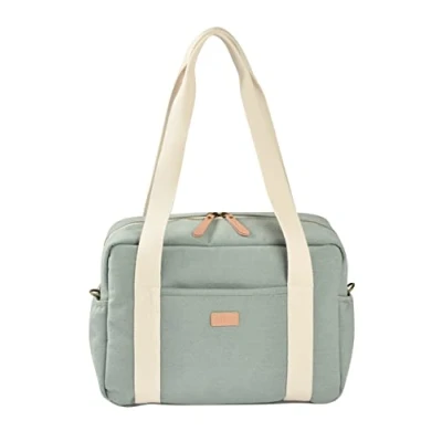 BÉABA, Baby Diaper Bag, Multiple Compartments, 10Pockets, Trolley Zipper, Shoulder Strap, Cooler Pouch, Changing Mat, Water Repellent, Capacity 16L, Bag Paris, sage green