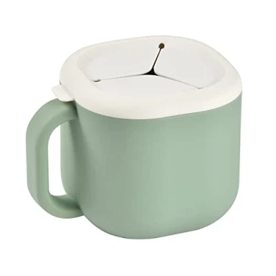 Béaba, Silicone Baby Snack Cup, Kids Tableware, Removable Lid, Healthy Materials, 16 Oz, Pick 'n' Snack, Sage Green