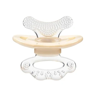 The step 1 teether is suitable for early teething and helps relieve baby when they are not yet able to hold their teether alone Flat surface with massage pins Possibility to put antiseptic cream to relieve pain Soft silicone material Ergonomic design for small mouths and small hands