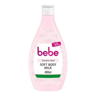 bebe Soft Body Milk 400ml Fast Absorbing with Jojoba Oil and Panthenol for Dry Skin, Mild Fragrance, Hydrates 24 Hours
