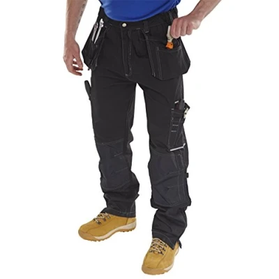 250gsm Polycot ton twill fabric Multi pocket design with tool pouches Tuck away holster pockets 1 rear pocket with Velcro flap External knee pad pouches