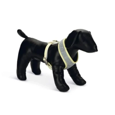 This harness is made of soft material, which makes it feel comfortable for your puppy. The harness fastened by means of the buckles. Nice detail: provided with a yellow stripe. - Soft, comfortable fabric - Handy Velcro closures - Available in 3 different sizes S: Neck size: 12 cm, chest harness: 24-34 cm - M: Neck size: 14 cm, chest harness: 32-46 cm - L: Neck size: 16 cm, chest harness: 36-52 cm