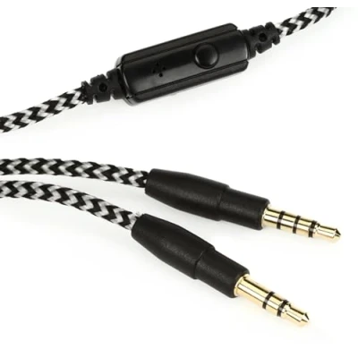 Powerful headphone audio extension cable with in-line microphone Turn your favorite headphones into an in-line microphone for clear VoIP conversations, conference calls, e-learning and gaming Super responsive microphone design with noise cancellation for excellent voice clarity Built-in music control switch for play/pause and select tracks High quality braided cable for long-lasting strength