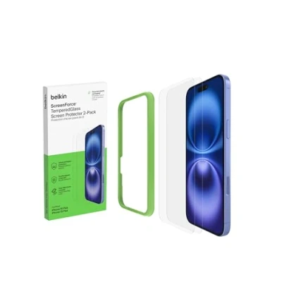ADVANCED IMPACT PROTECTION: Protect your new iPhone 16 Plus with slim, high-quality Japanese tempered glass – tested and proven to provide a superior level of edge-to-edge protection against drops, impacts, and other daily wear and tear SUPERIOR SCRATCH RESISTANCE: Proven to carry a hardness rating of 9H after rigorous testing, this ScreenForce TemperedGlass screen protector provides your iPhone the highest level of scratch protection available ULTRA-SLIM DESIGN: TemperedGlass boasts a super-thin design of just 0.33mm thin to ensure a flawless tactile response; this means touchscreen sensitivity is never compromised CRYSTAL CLEAR: Extend the lifetime of your screen protector, as the glass contains an antimicrobial treatment to prevent discoloration; Plus, your screen's resolution and color are projected accurately through the tempered glass screen protector FULL SCREEN COVERAGE: 2.5D edges are compatible with most iPhone cases and keep your entire phone screen protected without compromising touch sensitivity or visual clarity; Your phone's screen remains covered even when dropped on its edge EASY ALIGN FRAME INCLUDED: Applying this screen protector to your phone from the comfort of your home is made easy with the included Easy Align Frame; And with the convenience of a 2-pack, you can enjoy double the longevity SUSTAINABLY MADE: This screen protector's packaging is made from 100% recycled plastic for sustainable, environmentally friendly packaging ADDITIONAL MANUFACTURER’S WARRANTY: Our Belkin screen protectors are always built to last, with this screen cover being backed by an additional manufacturer’s warranty to ensure further peace of mind.