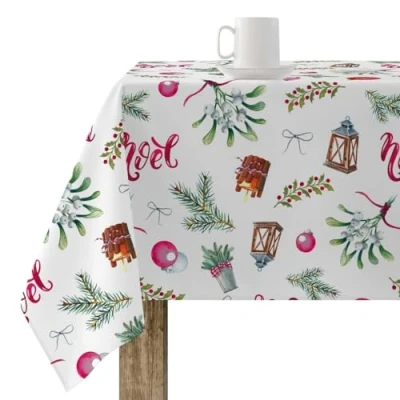 BELUM Christmas Tablecloth Stain Resistant Rectangular Table Cloth Resin (Laminated Touch) Home (100 x 140 cm)