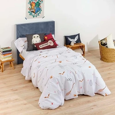 BELUM Duvet Cover with Buttons 100% Cotton Model Hogwarts Nordic for Bed of 90 (155x220 cm); Lightweight and Comfortable Cover; Official licenses