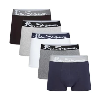 Ben Sherman Mens Poderick 5 Pack Boxer Shorts, Grey/Black/Navy/White, S