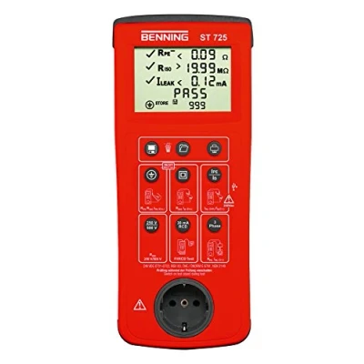 Equipment tester: Test according to VDE 0701-0702, DGUV Regulation 3 (BGV A3), BetrSichV, ÖVE/ÖNORM E 8701 and NEN 3140 Stylish and fashionable Reliable appliance tester designed for quick and accurate testing of electrical appliances for safety compliance Durable construction ensures long-lasting performance and reliability in demanding environments