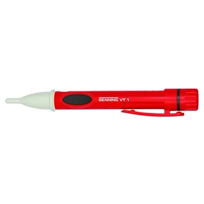 Testing the phase (outer conductor) at the earth contact sockets, junction boxes and circuit breakers, etc. via red LED test probe and beep. Finding cable breaks in insulated and live cables, e.g. on cable reels and fairy lights. Voltage range: 200 V - 1000 VAC. Non-contact testing, no contact with the electrical conductor required. Flashing frequency of the LED test probe and beep frequency increasing with the voltage level.