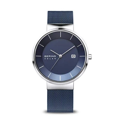 BERING Solar Movement 14639 307 Men's Watch with Stainless Steel and Sapphire Glass, Blue/blue, 39, Blue/Blue