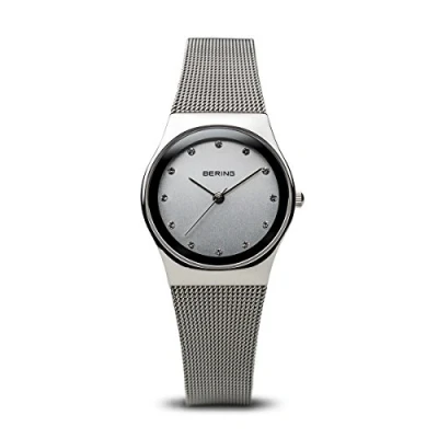 The BERING watch has a highly scratch-resistant and flat sapphire crystal covering the silver dial embellished in Swarovski Elements Classic watch collection | classic, puristic, and yet exciting - inspired by Danish design | quartz movement The case is made from silver IP-plated medical grade (316L) stainless steel. The case is 27 mm in diameter and 5 mm in thickness The strap is made from silver IP-plated milanese consisting of medical grade (316L) stainless steel. The straps length is 188 mm and the width is 13 mm Water resistant up to three ATM / 30 meters / 98 feet | General resistance to rain, splashing, accidental submersion and showering. Not suitable for swimming or bathing