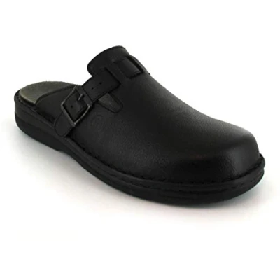 Genuine leather upper Men's classic in timeless design with elaborate hand seam Genuine leather-covered interchangeable footbeds, which can be machine washed at 30°C or can also be easily replaced with orthopaedic insoles if required Variably adjustable strap ensures a perfect fit and secure hold on the foot Extra large inner volume