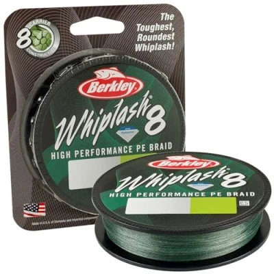 Berkley Whiplash 8 Braided Line Green 300m - Number of meters per spool: 300m - 100% PE material - Perfectly round braided - 8-strand construction - Super strong and extremely durable - Exceptionally smooth - Fast and long distance casting - Tough and hard-wearing - For use in fresh and salt water Berkley® Whiplash® 8 is a legendary line known as one of the strongest braided lines on the market! It is a perfectly braided 8-strand super line with 100% PE fiber. No matter if you are fishing the biggest freshwater or saltwater fish, you will always have the extreme fighting power of Whiplash 8 to rely on.