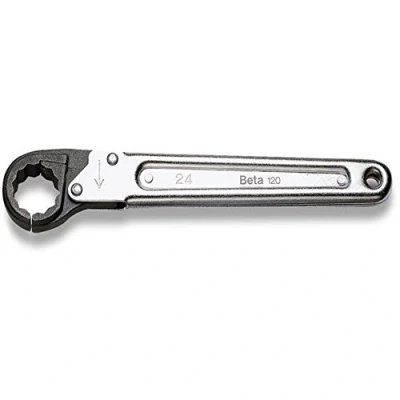 Beta 120 27mm Ratcheting Box End Wrench, 12 Point, Chrome Plated