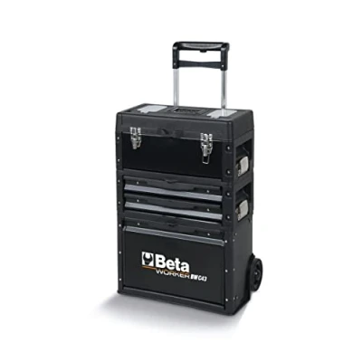 The tool trolley has 3 separable modules: 1 upper basket of height 222 mm, 1 central module of h 168 mm with 2 drawers of h 60 mm and 1 lower module of h 332 mm with tilting door and wheels The structure of the professional tool trolley is made of sheet metal and plastic material, has the telescopic handle adjustable in 4 positions and a module release system with access to all the different tool compartments The top basket of the Beta tool trolley features a removable inner storage tray and 2 integrated slip holders in the lid; while the wheels have a diameter of 128 mm The Beta work tool trolleys are designed with the intention of guaranteeing maximum safety, strength, reliability and ease of use to be at the party of everyone The Beta Worker Range always guarantees high quality and durability of its work tools thanks to strict controls on the final product in order to achieve maximum customer satisfaction