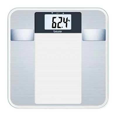Diagnostic glass scales with brushed stainless steel electrodes Basic determination of body weight, body fat, body water, muscle ratio and BMI 5 Activity levels ranging from no exercise to high physical exercise Memory space for separate 10 users Large easy to read LCD display with a digit height of 38mm