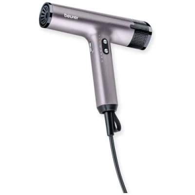 QUICK DRYING: The Beurer HC 100 hair dryer allows you to dry your hair quickly and precisely style your hair thanks to the powerful brushless motor ULTRA LIGHT: At 360 g, the hair dryer is particularly light - so you can use it for a long time without your arm getting heavy FLEXIBLE SETTING: The hair dryer has 4 temperature and fan settings - so you can choose the position that suits you best and dry your hair gently, the position is indicated by an LED display MAGNETIC MOUNTATIONS: The styling nozzle and diffuser attachment are magnetic and can be easily attached to the hair dryer and easily changed, the removable filter is also magnetic and can be easily cleaned Distinctive design: the hair dryer impresses with its compact and striking design, the cord is particularly long and salon-worthy at 2.8 meters, with the hanging loop, the hair dryer can be conveniently stored