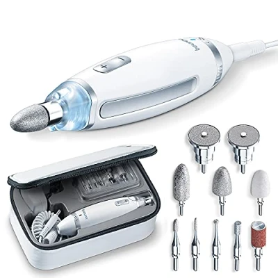 Beurer MP62 Home Manicure and Pedicure Set, Electric Nail File, 10 High Quality Attachments, For Natural, Acrylic Gel Nails, Precision Light, Fast Rotation (2000 5400rpm)