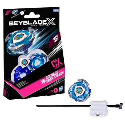 PROVE IT IN BATTLE!: Beyblade X brings the thrill of competition with a fast-paced, battling top toy that challenges aspiring Beymasters to level up their game. Assemble your tops, load your launchers and 3-2-1 let it rip! (Beyblade X Beystadium required, sold separately) CX TOPS WITH ENHANCED CUSTOMISATION: Beyblade X boosts your battle possibilities with CX tops that feature blades which separate into three parts for increased customising options! CX blades separate into a lock chip, primary blade and auxillary blade COURAGE DRAN S 6-60V CX RIGHT-SPIN ATTACK TYPE WITH ATTACK TYPE BLADE: includes Takara Tomy-designed Beyblade X launcher and top with authentic die-cast metal parts. The Courage Dran primary blade has a strong downward force, and the auxillary blade has a low centre of gravity X-CELERATOR GEAR SYSTEM: speed into high gear with the X-Celerator Gear System. When the gears of the bit meet the X-Celerator Rail, spinning tops rocket forward in an Xtreme Dash for intense speeds that allow for breathtaking bursts and colossal crashes (only compatible with Beyblade X System) EASY-TO-ASSEMBLE PIECES: the interchangeable blade, ratchet and bit layers of Beyblade X tops assemble and reassemble easily, leaving you ready to launch into battle, Manufacturer: Hasbro