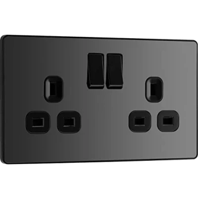SLIM AND CONTEMPORARY DOUBLE SWITCHED POWER SOCKET: From BG Electrical, the Evolve black chrome double socket is ideal for modern interiors FROM THE BG ELECTRICAL RANGE: It has been designed with angled in line colour coded terminals and backed out captive screws for ease of installation THE SLEEK AND SLIM EVOLVE DOUBLE SOCKET HAS A LOW PROFILE SCREWLESS FLAT PLATE: That clips on and off, ideal for re-decorating FOR FAST AND EASY INSTALLATION: The double socket fits a 25mm back box making it an ideal retrofit replacement for existing sockets BG ELECTRICAL IS PART OF LUCECO PLC: They guarantee against faulty materials and workmanship for 25 years – giving you total peace of mind