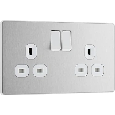 SLIM AND CONTEMPORARY DOUBLE SWITCHED POWER SOCKET: From BG Electrical, the Evolve brushed steel double socket is ideal for modern interiors FROM THE BG ELECTRICAL RANGE: It has been designed with angled in line colour coded terminals and backed out captive screws for ease of installation THE SLEEK AND SLIM EVOLVE DOUBLE SOCKET HAS A LOW PROFILE SCREWLESS FLAT PLATE: That clips on and off, ideal for re-decorating FOR FAST AND EASY INSTALLATION: The double socket fits a 25mm back box making it an ideal retro-fit replacement for existing sockets BG ELECTRICAL IS PART OF LUCECO PLC: They guarantee against faulty materials and workmanship for 25 years – giving you total peace of mind