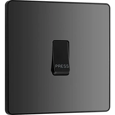 STYLISH, CONTEMPORARY PRESS SWITCH: From BG Electrical, with a black chrome finish and a slim low profile - perfectly accenting, contrasting or blending sleekly into modern interior design. PART OF THE BG EVOLVE RANGE: The screwless front plate can be easily clipped on and off – making life easier when the time comes to redecorate. RETRACTIVE BELL SWITCH WITH 'PRESS' LETTERING: An ideal solution for use where access is restricted. With its retractive switching, the switch returns to its original position after being pressed. CAPTIVE BACKED-OUT TERMINAL SCREWS FOR EASY INSTALLATION: Easy wire connection with terminal screws to prevent screw loss. Adheres to BS60669-1 regulations which ensures a safer electrical installation. Minimum mounting box: 25mm BG ELECTRICAL 25 YEARS MANUFACTURER'S WARRANTY: They guarantee against faulty materials and workmanship for 25 years – giving you total peace of mind