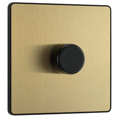 SLIM AND CONTEMPORARY SINGLE DIMMER SWITCH: From BG Electrical, the Evolve satin brass dimmer switch is ideal for modern interiors NO FLICKER, TRAILING (LAGGING) EDGE DIMMER: Is suitable for dimming LED, dimmable compact fluorescent lamps (CFL) and traditional lighting CAPTIVE, BACKED OUT TERMINAL SCREWS: For fast and easy installation and to prevent screw loss MODERN, CLEAN AND SLEEK IN APPEARANCE: With screwless front plate that clips on and off easily, giving your home a clean and non-obtrusive style, allowing the dimmer switch to complement your décor BG ELECTRICAL IS PART OF LUCECO PLC: They guarantee against faulty materials and workmanship for 25 years – giving you total peace of mind