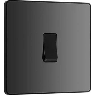 SLIM AND CONTEMPORARY INTERMEDIATE SINGLE LIGHT SWITCH: From BG Electrical, the Evolve black chrome light switch is ideal for modern interiors THE SINGLE INTERMEDIATE LIGHT SWITCH SHOULD BE USED AS THE MIDDLE SWITCH: When you need to operate one light from 3 different locations, such as either end of a hallway and at the top of the stairs CAPTIVE, BACKED OUT TERMINAL SCREWS: For fast and easy installation and to prevent screw loss MODERN, CLEAN AND SLEEK IN APPEARANCE: With screwless front plate that clips on and off easily, giving your home a clean and non-obtrusive style, allowing the light switch to complement your décor BG ELECTRICAL IS PART OF LUCECO PLC: They guarantee against faulty materials and workmanship for 25 years – giving you total peace of mind
