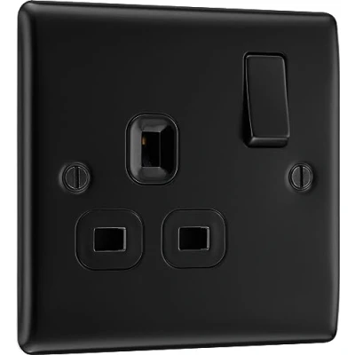 SLEEK AND SLIM MATT BLACK SINGLE SWITCHED POWER SOCKET: From BG Electrical has softly rounded corners and colour matching fixing screws– combining quality with modern elegance CONVENIENTLY ANGLED IN-LINE COLOUR CODED CAPTIVE SCREW TERMINALS: Makes it incredibly easy to install and to connect the wires setting it up as one terminal FIXED INTEGRATED PLASTIC GASKET TO PROTECT METAL EDGES FROM MOISTURE: With no visible plastic to be seen around the switches FOR FAST AND EASY INSTALLATION: The single socket fits a 25mm back box making it an ideal retrofit replacement for existing sockets BG ELECTRICAL IS PART OF LUCECO PLC: They guarantee against faulty materials and workmanship for 25 years – giving you total peace of mind