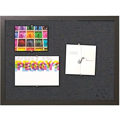 Dark grey fabric to show photos and notes Simple and durable black MDF frame Ideal for writing and attaching reminders, deadlines, alerts, notes Easy installation with the included wall mounting kit