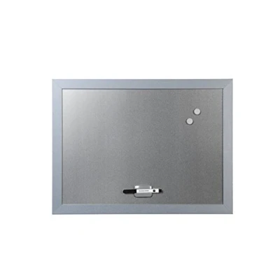 32 mm thick MDF frame in grey Dry wipe magnetic surface with silver lacquer Magnetic surface allows you to attach notes or other information using magnets Easy wall mounting The box contents include 1 board marker, 1 blackboard cleaner, 2 magnets and a wall hanger. Easy to write on and wipe clean. Easy to hang on any wall. Whiteboard marker included. Lightweight