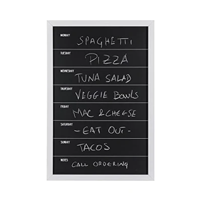 Classic lines make this a choice for any environment High quality chalk surface is perfect for planning out your week or menus Ideal for restaurants, coffee-shops, boutiques and personal spaces Black surface works great with chalk and liquid chalk markers Surface can be easily cleaned with a cloth or felt eraser Sturdy and attractive white MDF frame Easy installation with wall mounting kit included
