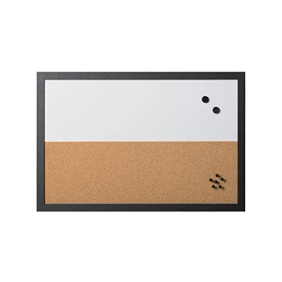 Bi Office Combo Magnetic Whiteboard Dry Wipe/Cork Memo Board Elements, Black MDF Frame, 60 x 40 cm