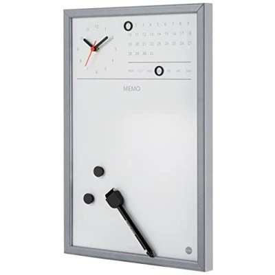 Bi Office Dry Wipe Magnetic Whiteboard with Clock, Weekly Planner 30 x 45 cm Grey
