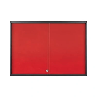 Bi Office Exhibit Extra Pinnable Display Case, 8xA4, Red Felt Surface, Glass Door, Aluminium Anthracite Frame