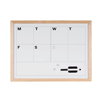 Bi Office Magnetic Dry Wipe Weekly Planner, Pine Frame, 120 x 90 cm