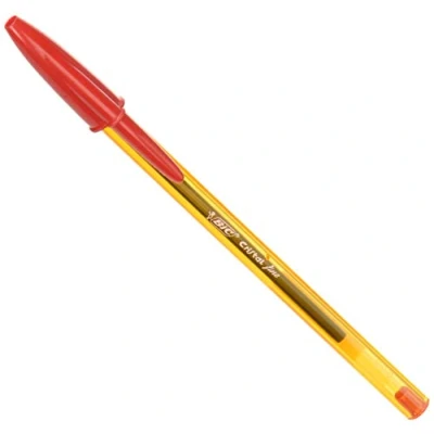 AmazonBIC CRISTAL FINE Ballpoint Pen Red Fine Point. Translucent orange body. Tip and cap in the colour of the ink. Visible ink level. 0.8mm Fine Tip Ink colour: red. NF standard.