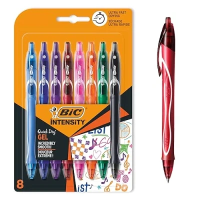 BIC Gel ocity Quick Dry Rollerball Pen 8 Colours Medium Line Width Rubber Grip