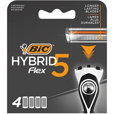 BIC Hybrid 5 Flex Men's Shaver Refills with Moveable Nano Tech Titanium Coated Razor Blades Box of 4 Cartridges
