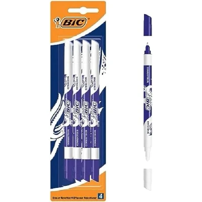A must have for all students writing with fountain pens, the BIC ink killer will erase all mistakes. Dual tip design erases fountain pen ink and corrects with permanent dark blue ink The white bullet tip is precise and smudge-proof and the correct angle can adjust the width of the eraser pin The ink killer has a dimensionally stable tip that does not slip into the barrel even when pressure is applied Whether at school or at home, the striking blue and white design helps to make it easy to fit in the pencil case