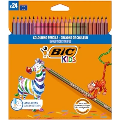 BIC Kids Evolution Stripes Colouring Pencils Assorted Colours, 24 Count (Pack of 1)