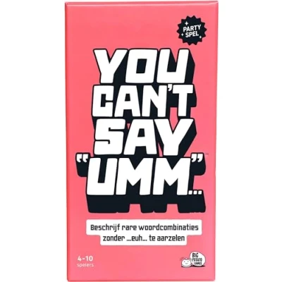 Word Combination Game: Describe as many word combinations as possible within 45 seconds without saying 'uh' or 'ehm' Opponents Respond Fast: The opposing team scores points for each 'uh' and 'ehm', and for every 'thing' that is said Concentration Required: Stay focused to help your team score points without hesitation Material:Cardboard, Manufacturer: Big Patato Games