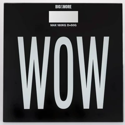 Bigismore personal scale Made of tempered glass and impact-resistant polystyrene (HIPS) LCD display Unit of measurement: Kg/Lb Maximum load: 180 kg Accuracy: 50 g Minimum detected weight: 5 kg Bigismore Bathroom Scales Tempered Glass and Shockproof Polystyrene (HIPS) LCD Display Units of measurement: Kg/Lb, Maximum load: 180 kg; Accuracy: 50 g Minimum weight detected: 5 kg, Automatic ON/OFF step; Low battery indicator Maximum weight indicator, non-slip feet; with Bigismore "WOW" lettering