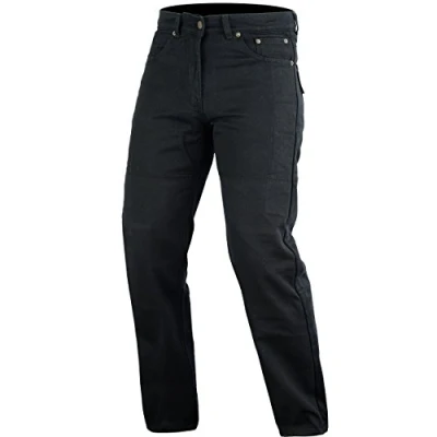 Inside the back and in the hip area as well as outside on the legs, thighs and knees with soft woven Kevlar permanently lined. No fabric only with Kevlar components Includes CE marked protectors. Fully machine washable and tumble dryer safe. The coin pocket is cut larger so that you can reach into it even with gloves and take out change, and attached to the left side to avoid having to release the throttle handle.