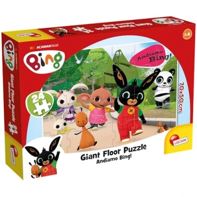 A mega puzzle from the world of Bing for younger children Sturdy cardboard, large pieces Maxi puzzle in 4 colours, 70 x 50 cm, 24 pieces Fine dexterity and hand-eye coordination, curiosity and observation ability, image decoding Made in Italy, Manufacturer: puzzel